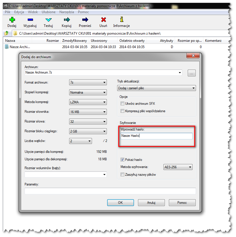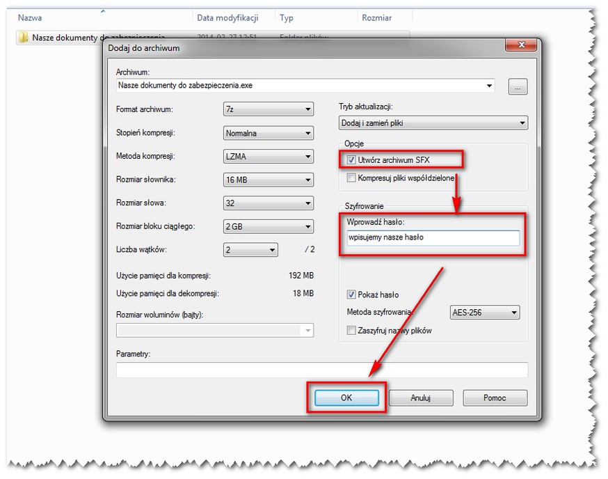 zakładanie archiwum samorpakowujacego się z hasłem1.2.3.4.5.6.